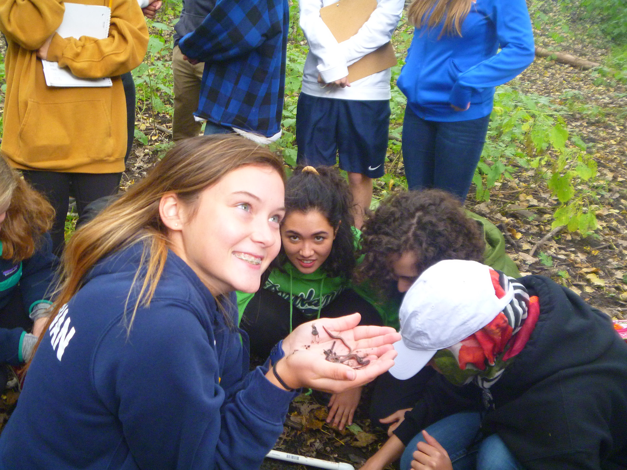 Students from St. Paul Academy survey for invasive earthworm populations at Crosby Farm Regional Park in St. Paul.