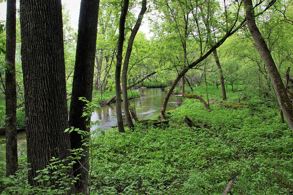 For the last century, the South Branch of the Vermillion River flowed through a primarily agricultural landscape, though wooded buffers now flank much of the stream, and its once-channelized banks have been restored to their natural meanders.