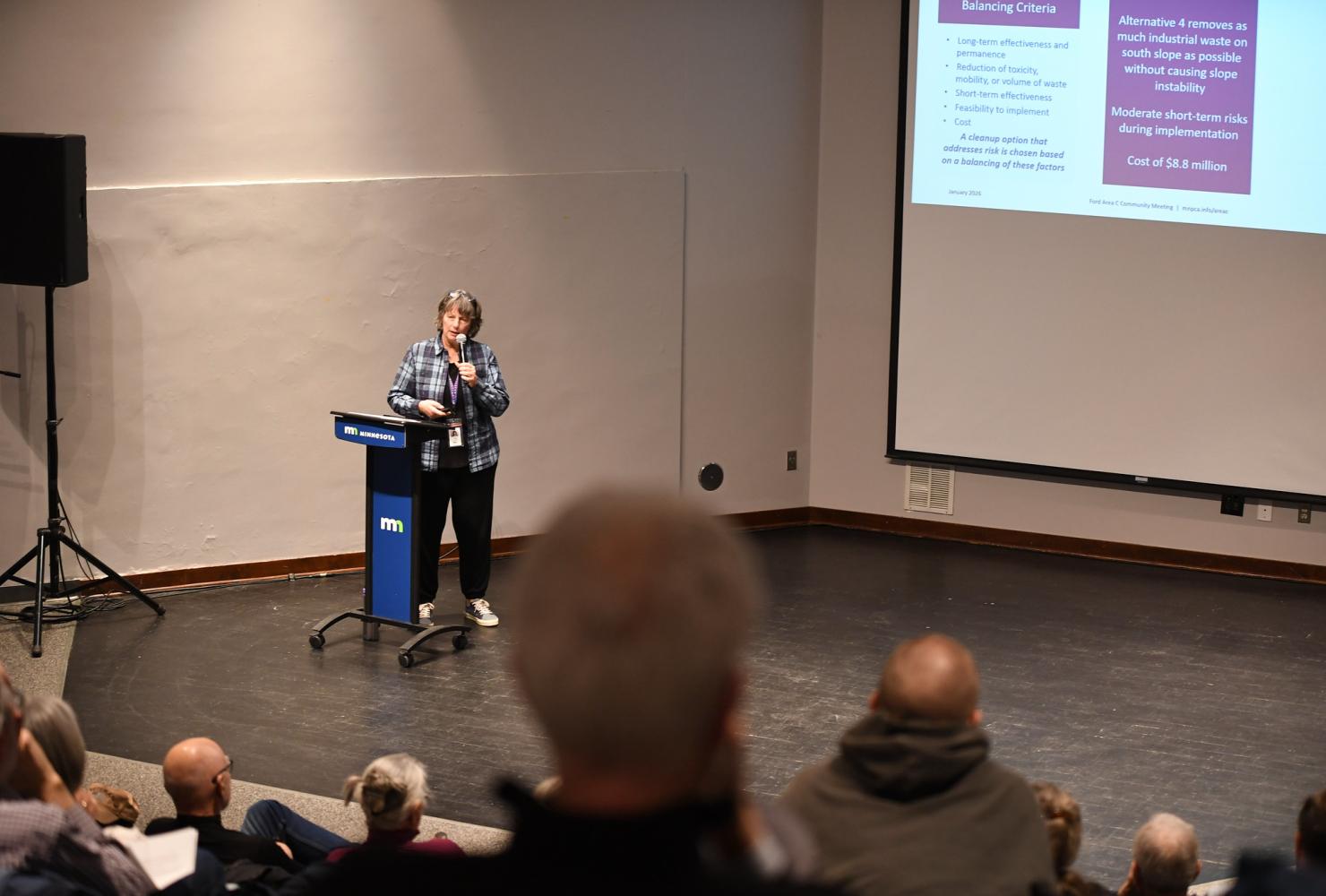 To an audience of over 100 people, the MPCA presented an overview of the site’s history and monitoring results. Agency representatives explained why they recommend a partial cleanup for the site before taking questions from the audience. (The agency held a similar virtual meeting on Jan. 21. Watch the recording.)