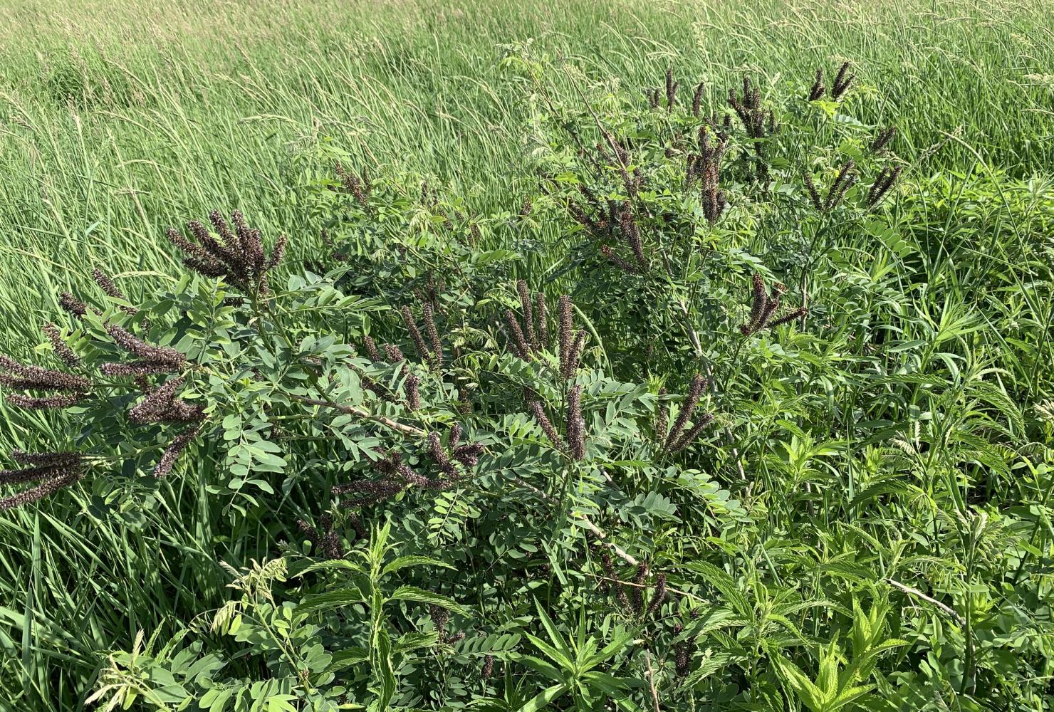 Increasing plant diversity in these wetlands will support a greater array of wildlife, including frogs, turtles and birds that feed and nest in wetlands. Our wetland restoration has enhanced plant communities within the AMA, but we've been thrilled to see a few species grow that we didn't plant! Wetland seedbanks are often well-preserved in the low-oxygen conditions of saturated soils, and at Vermillion River AMA, plants like false indigo and rice cut grass returned in abundance once given some space to thrive.