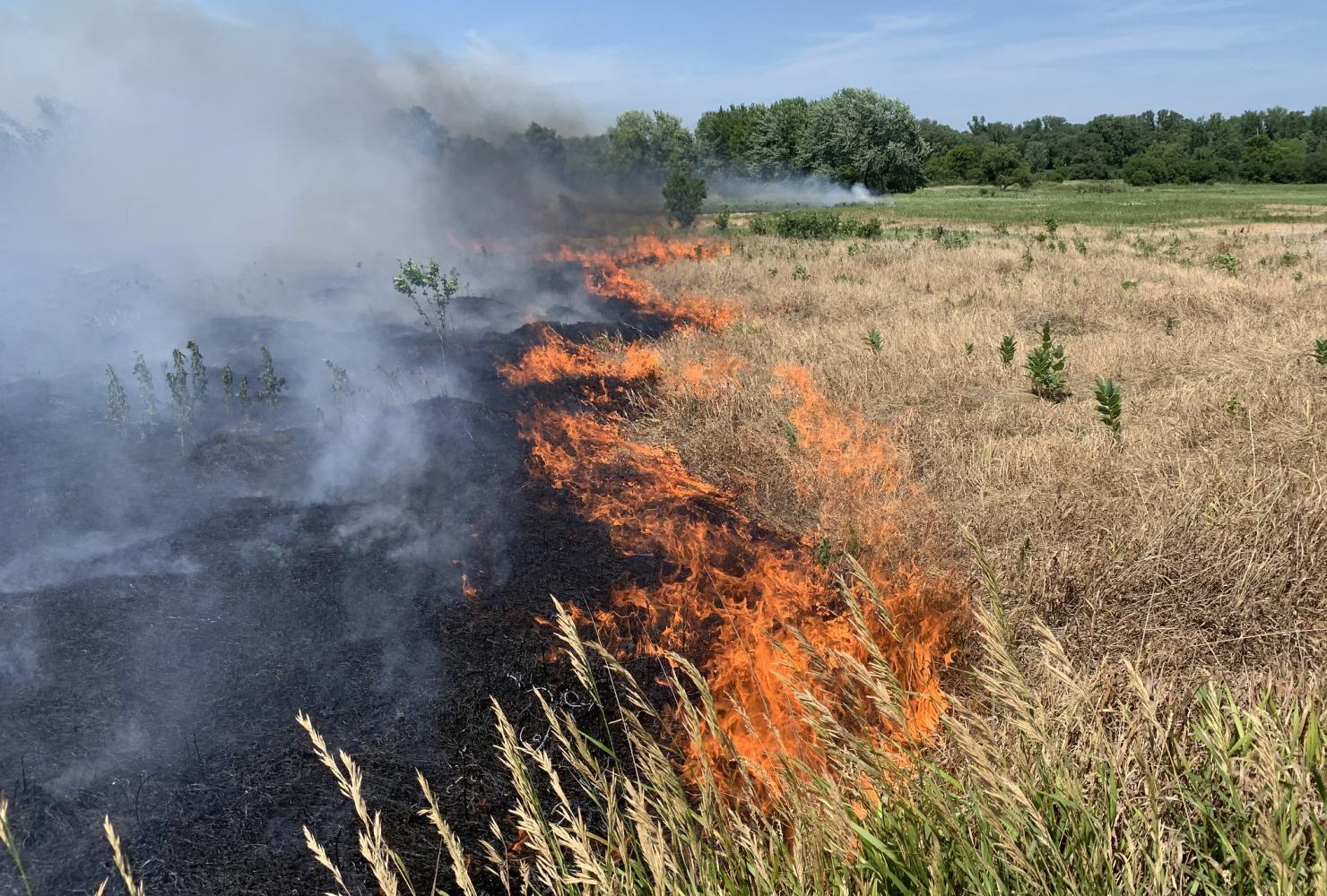We also implemented some innovative strategies to create pockets of prime wetland habitat in what had been a sea of reed canary grass. Dense stands of reed canary grass trap sediment in their underwater root systems, stagnating water and reducing shallow-water habitat that aquatic wildlife species need. Through an early summer prescribed fire, focused follow-up management to create openings of various sizes, and planting of a specialized seed mix, we were able to reduce reed canary grass and create islands of diverse plant communities.